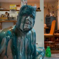LeRex got a custard-filled balloon busted over his head by MessyMegan